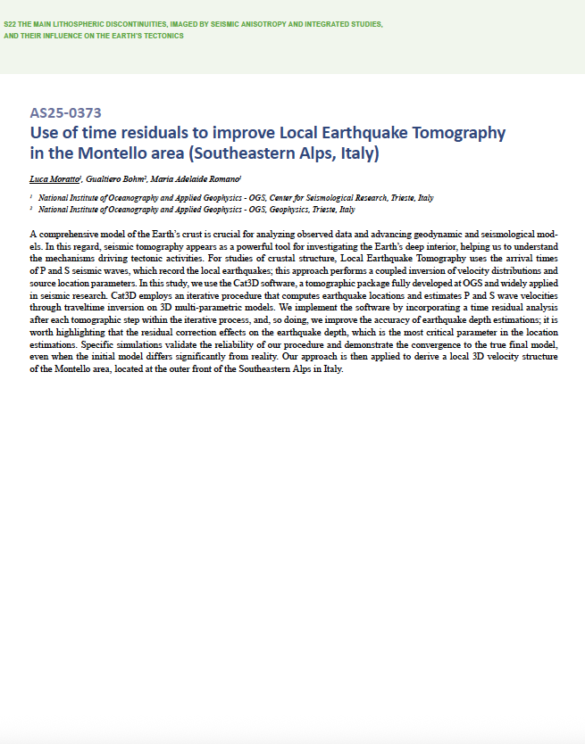 Use of time residuals to improve Local Earthquake Tomography in the Montello area (Southeastern Alps, Italy).