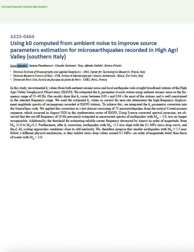 Using k0 computed from ambient noise to improve source parameters estimation for microearthquakes recorded in High Agri Valley (southern Italy)